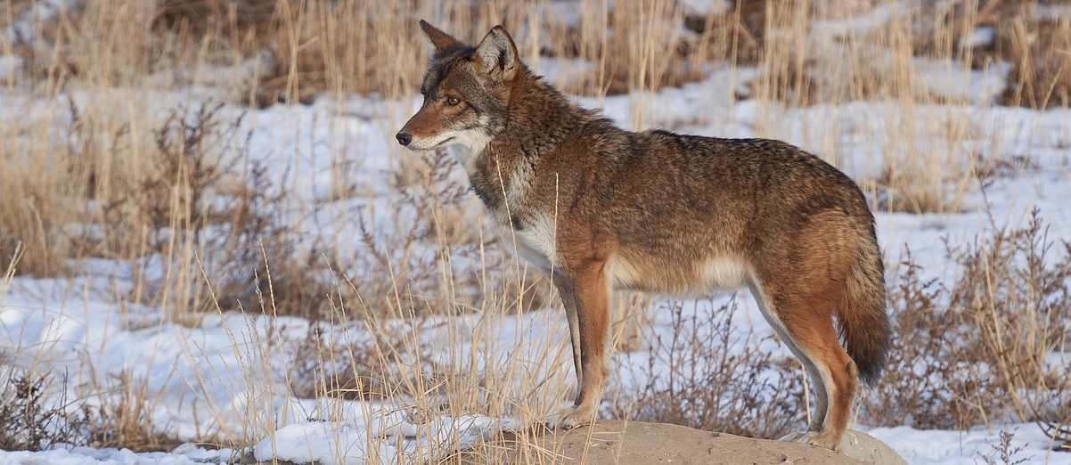 Coyotes often team up with what animal to hunt?